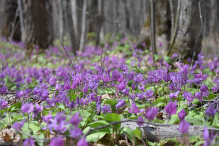 尾根筋ではエゾエンゴサクが優勢です。雪解けが遅い北斜面では、カタクリもまだまだこれから。